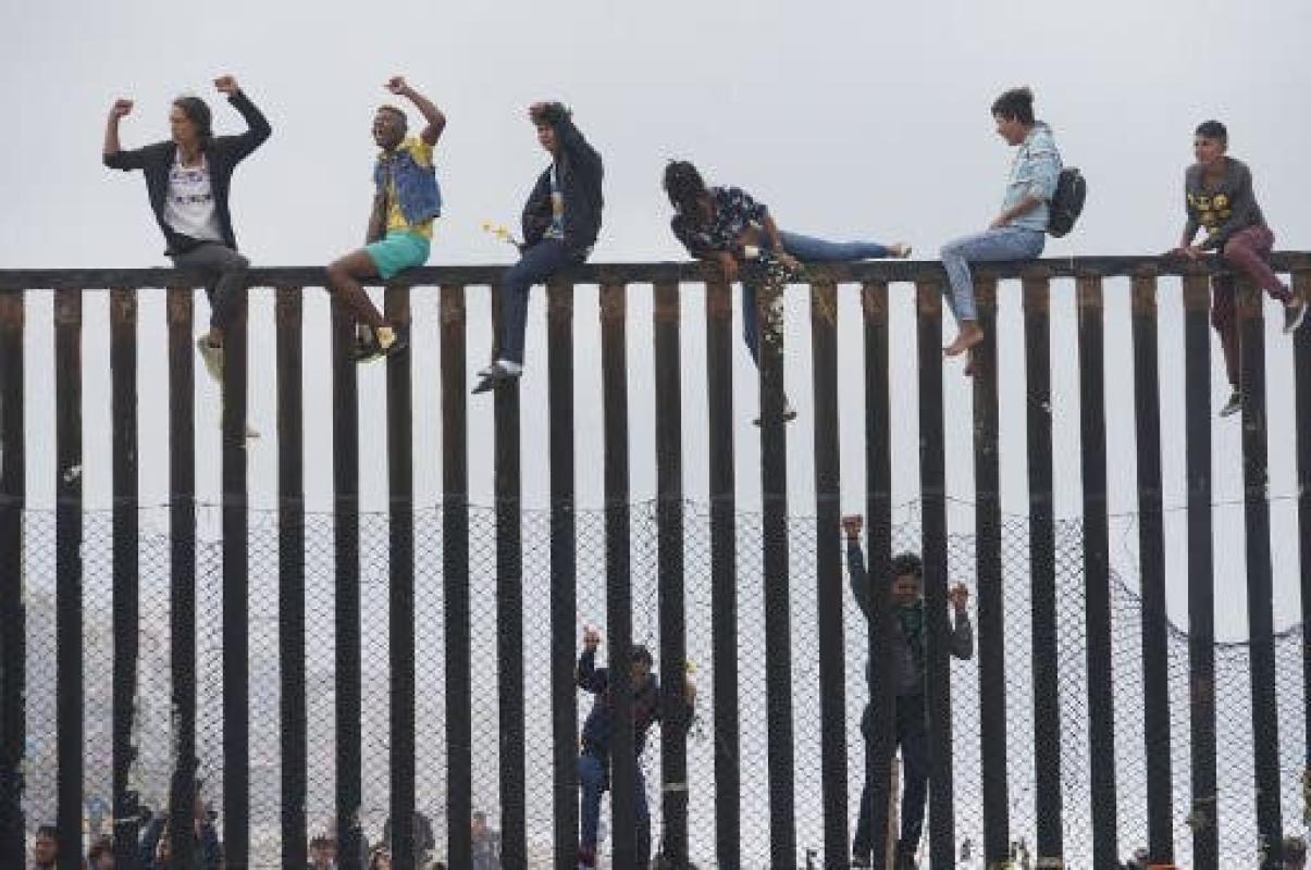 Previamente, varios migrantes cantaron el himno nacional de Honduras, y unos 30 de ellos escalaron la valla fronteriza en donde gritaban "alerta, alerta, que camina la lucha del emigrante por América Latina".