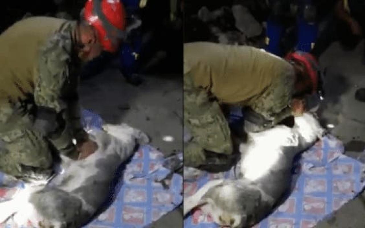 Un soldado de la Secretaría de Marina (Semar) conmovió en redes sociales luego de que intentara reanimar a un perro rescatado de los escombros del derrumbe en México.