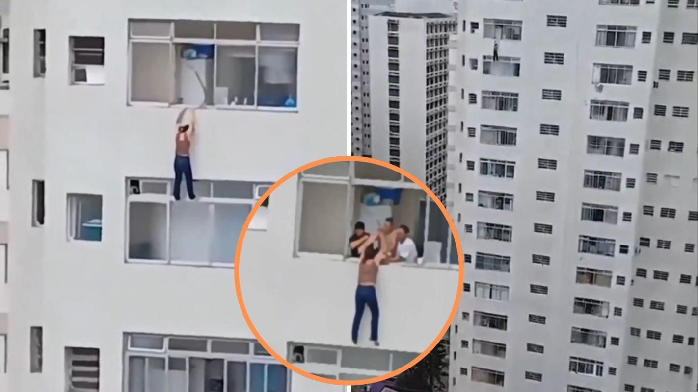 ¡Momentos de terror!: Captan a brasileña que accidentalmente quedó colgando desde el piso 15