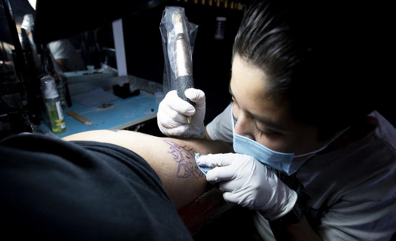 "Empecé ayudando a mi papá, viendo videos y hay un libro que es un curso de tatuajes, lo empecé a leer, me empecé a meter más", relata.