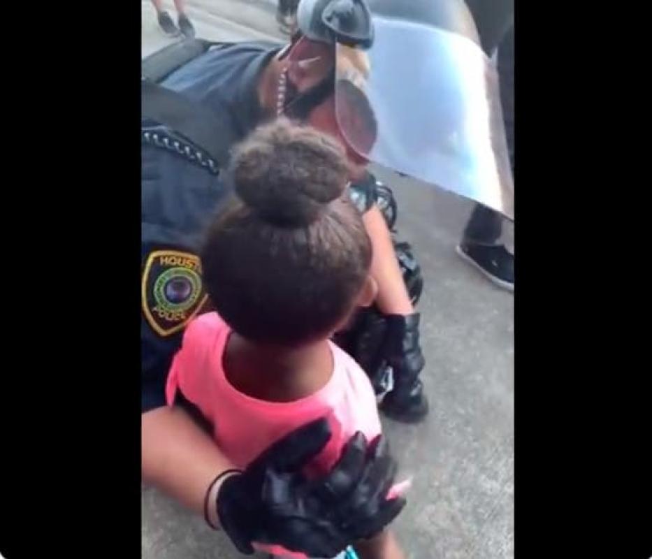 Un emocionante momento se vivió en medio de una protesta en Estados Unidos entre una niña de 5 años y un policía.