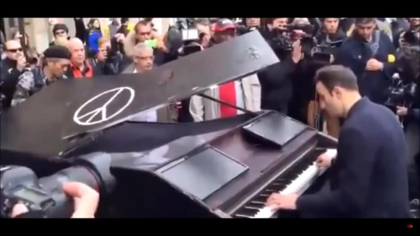 El artista, tocó una versión personalizada de Imagine de Jhon Lennon. Esto lo hizo como un homenaje a las víctimas que padecieron tras los atentados. El hecho llamó la atención de todos los presentes y, de un momento a otro, el hombre se llenó de cámaras y celulares que filmaron su pieza.