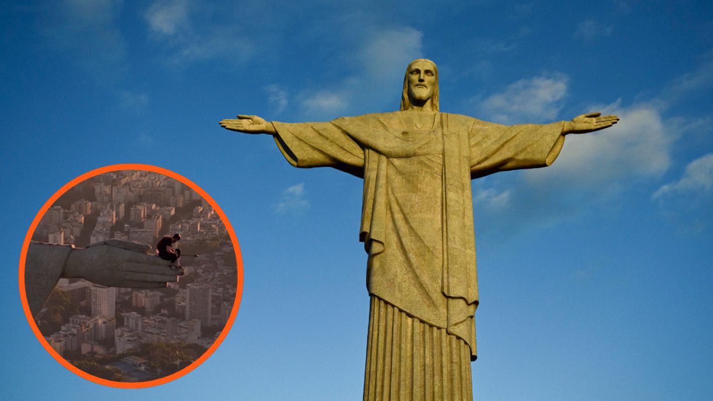 En el video se ve a un hombre sentado en una de las manos del Cristo Redentor, mientras se balancea para preparar su salto. "Entre coraje y peligro, la línea es muy delgada", escribió el guía turístico.