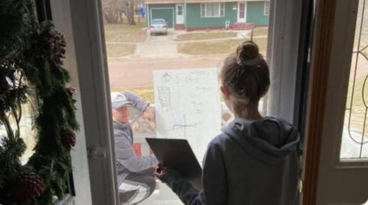 Sabiendo que ella vivía justo al otro lado de la calle, Waba tomó su pizarra y se dirigió a una clase especial, una que aún cumplía con las reglas de distanciamiento social.