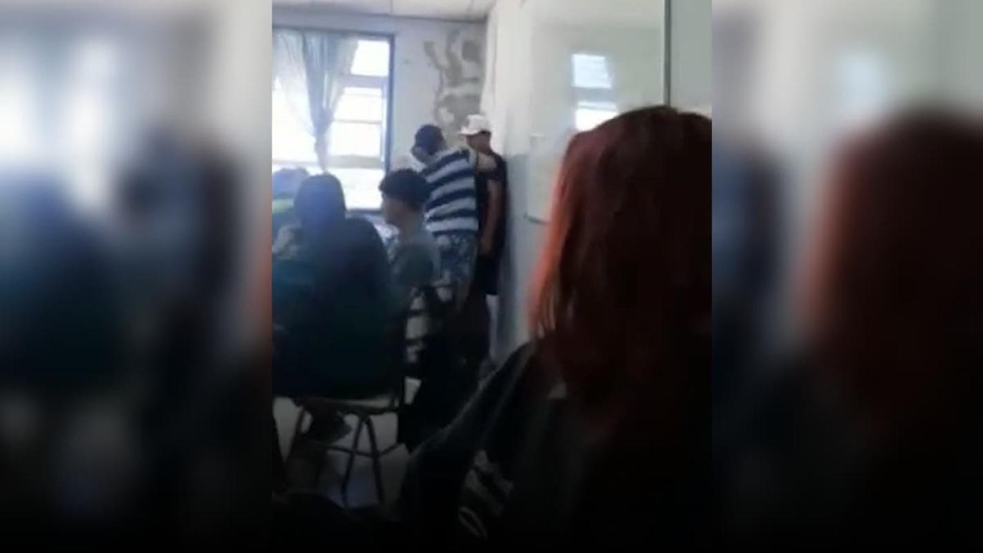 Luego de eso, afirmó estar cansada de “venir acá 10 millones de veces a denunciar lo mismo”. Tras ello, su hijo señaló a uno de sus compañeros y la mujer le dijo: “¡Qué te pasa con mi hijo!”, golpeándolo frente a los otros estudiantes.