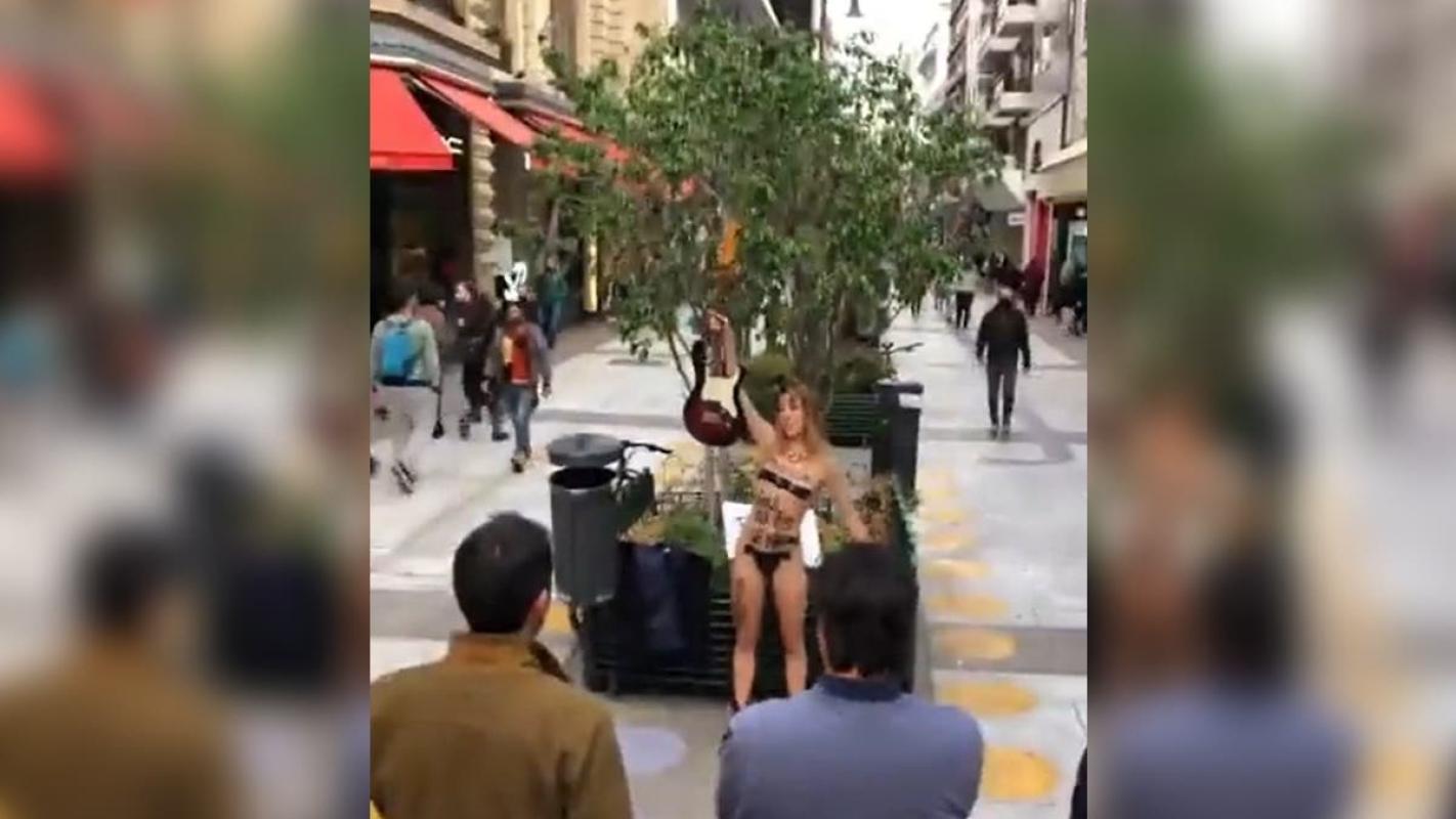 Una joven cantante se desnudó afuera de un centro comercial de Buenos Aires, en Argentina, reclamando que la música “está muriendo”. El momento fue captado por personas que transitaban por el lugar y viralizado a través de las redes sociales.