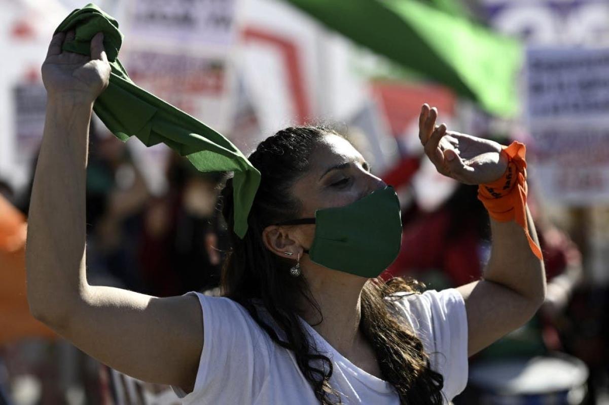 Organizaciones de mujeres renovaron este lunes el reclamo por la legalización del aborto en Argentina con una protesta frente al Congreso y un "pañuelazo" verde por redes sociales en medio de la pandemia de la covid-19.