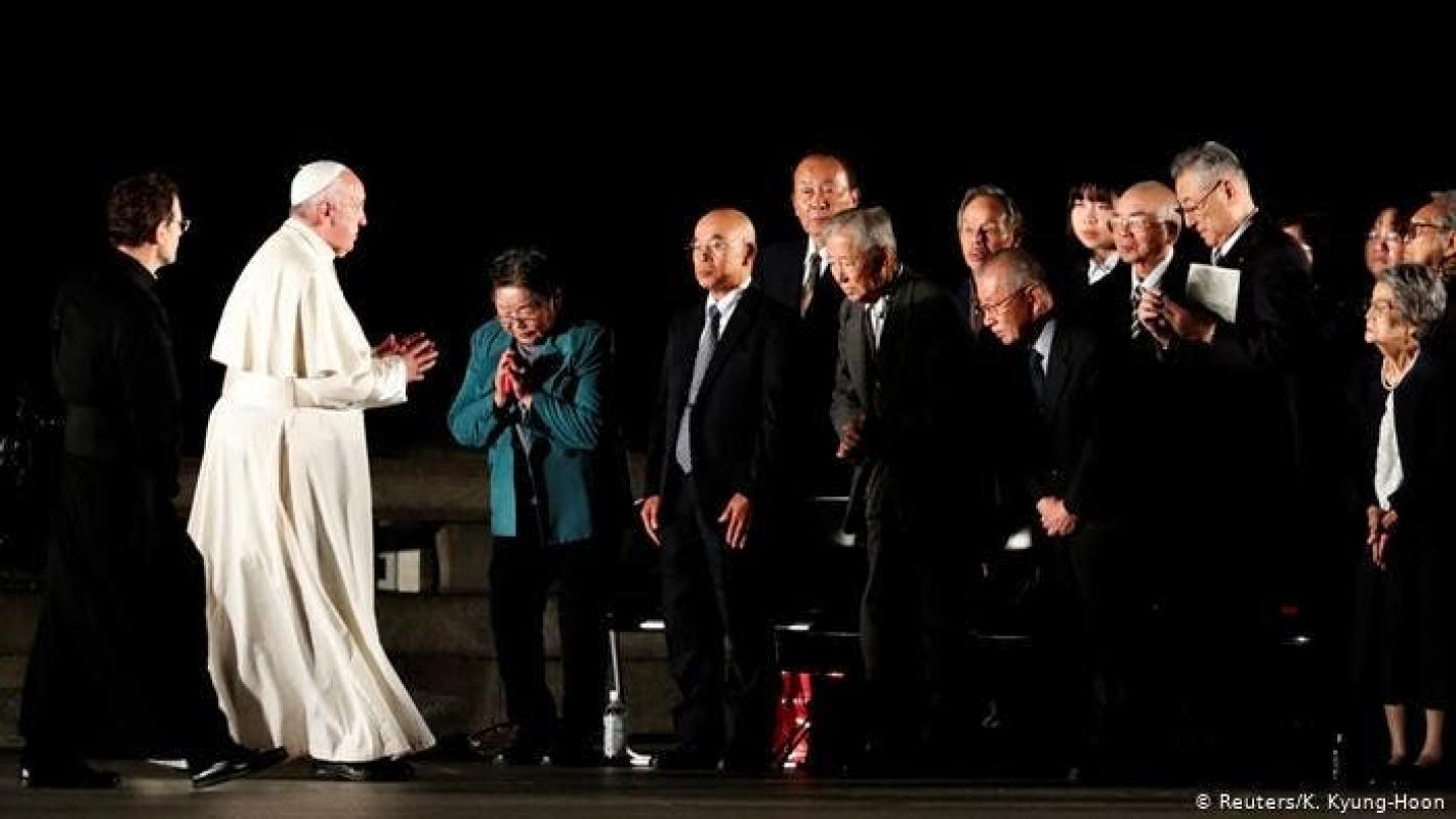 Francisco viajó a Nagasaki el domingo temprano, golepada por una segunda bomba nuclear estadounidense tres días después de Hiroshima. Allí también allí se reunió con los "Hibakusha", los supervivientes irradiados, y mencionó el "horror indescriptible" vivido por las víctimas.