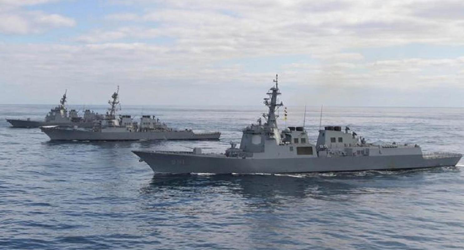 La Séptima Flota del Pacífico de EE.UU. divulgó fotos del buque con la bandera surcoreana ondeando junto a la estadounidense, así como la Armada surcoreana dando la bienvenida al mismo.