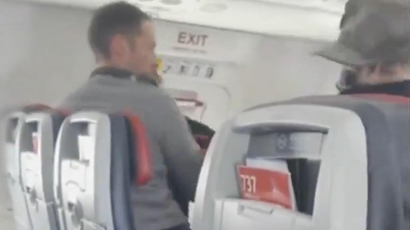 El registro fue viralizado a través de redes sociales, donde se aprecia al hombre intentando abrir la puerta de emergencia, ante la rápida respuesta del resto de los pasajeros, quienes impidieron que concretara su cometido.
