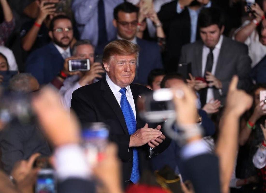 "Hoy tengo un mensaje para todos los funcionarios que están ayudando a mantener a (el presidente Nicolás) Maduro en el cargo. Los ojos del mundo están sobre ustedes", dijo Trump en un encuentro con la comunidad venezolana en Miami.