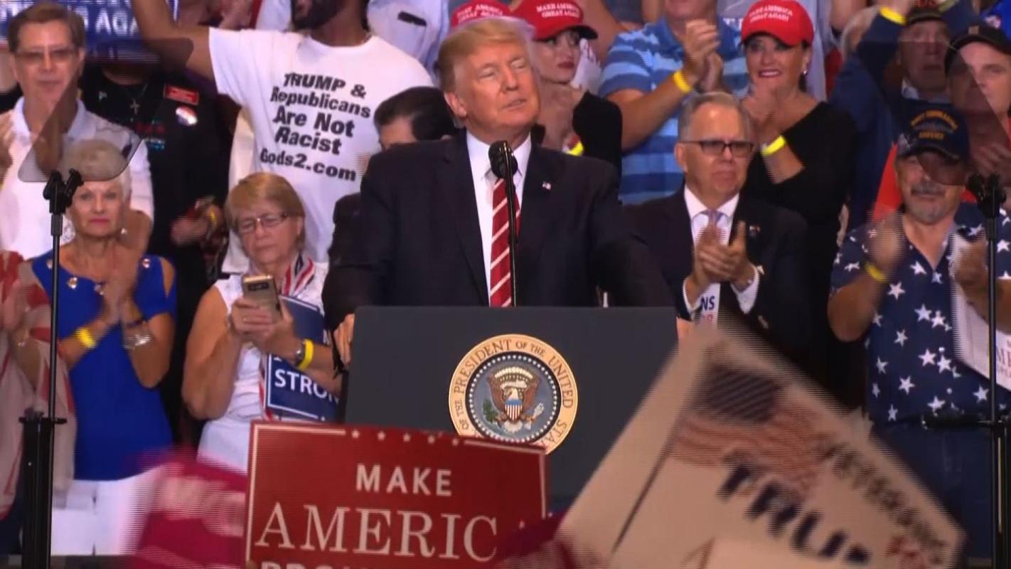 Arropado por gritos de apoyo, el mandatario aprovechó la multitud para dedicar cerca más de la mitad de su discurso de 78 minutos a críticas para atacar a "gente enferma" en los medios y las élites, así como para reivindicarse por sus declaraciones sobre Charlottesville.