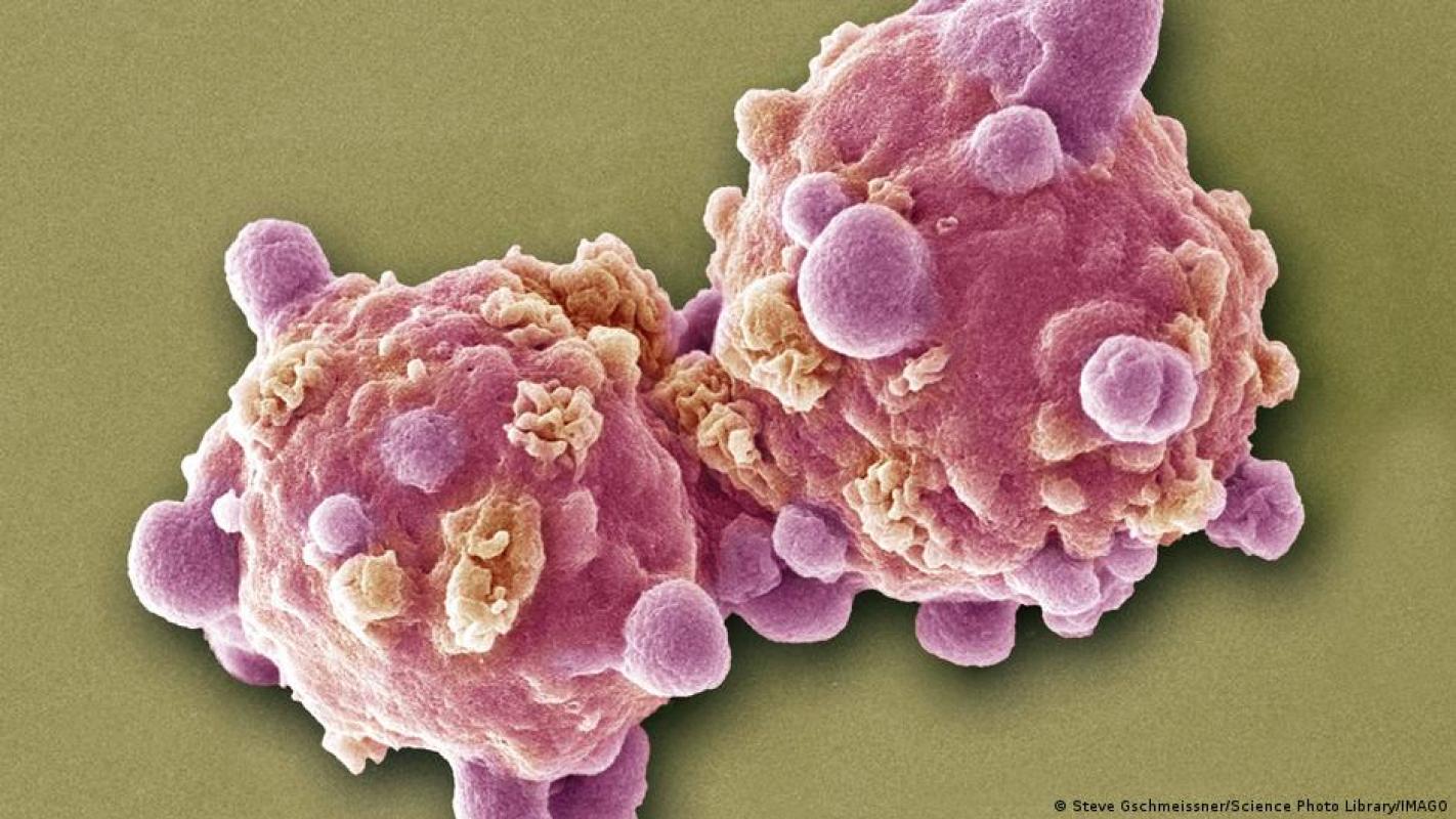 Deutsche Welle - Células de leucemia vistas en una micrografía electrónica de barrido coloreada (SEM).