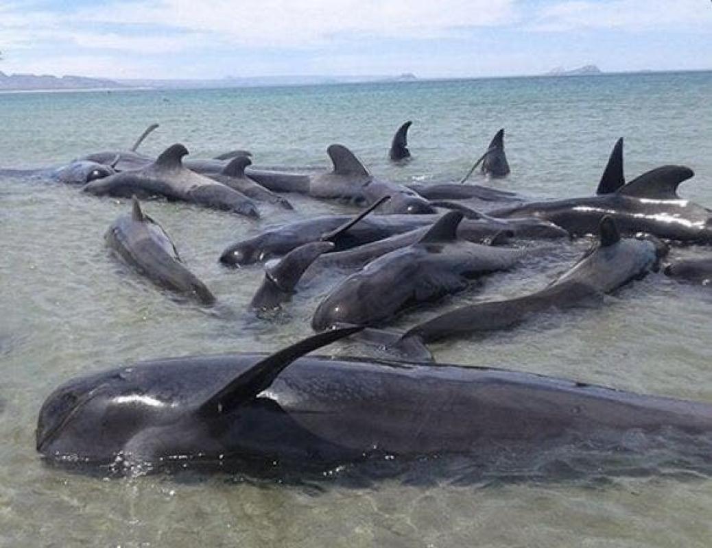 Una veintena de ballenas mueren al quedar varadas en una playa mexicana