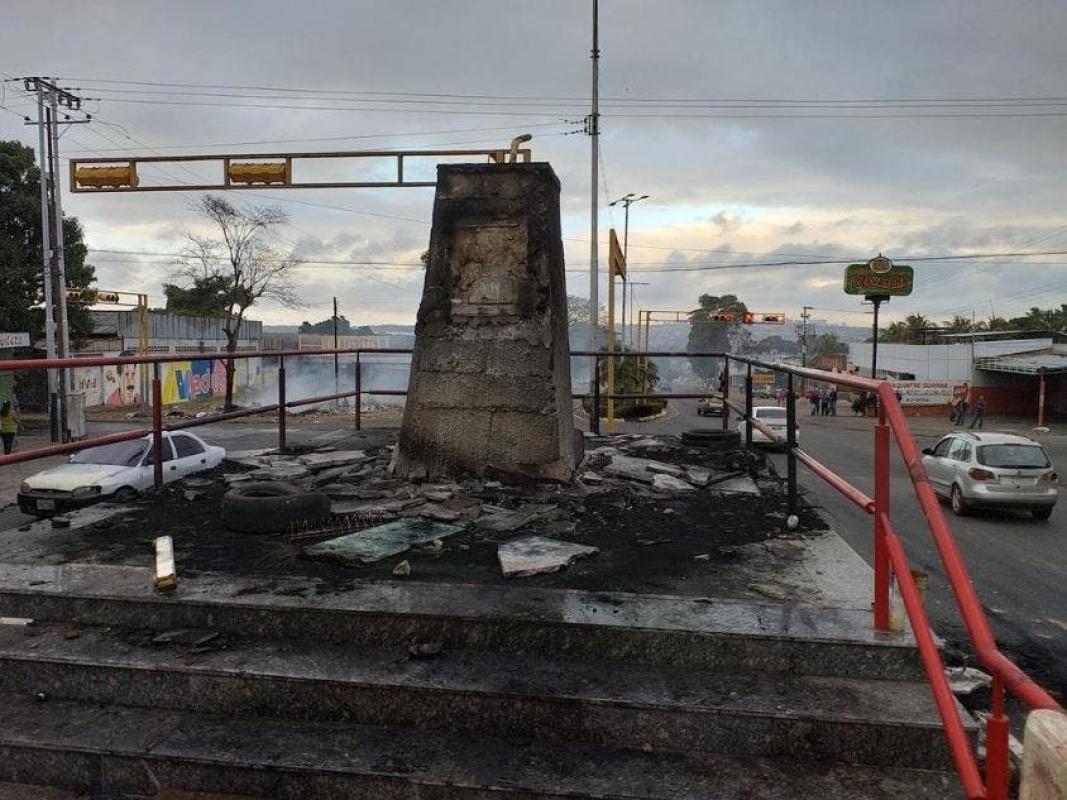 A su vez, una estatua del fallecido expresidente Chávez (1999-2013) fue quemada por decenas de manifestantes en la ciudad de San Félix, en Bolívar, en la medianoche del martes. En fotos y videos difundidos en redes sociales se ve el monumento -que ya había sido vandalizado el año pasado- envuelto en llamas.