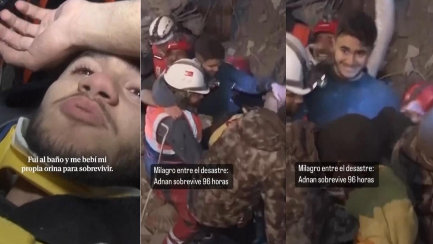Adnan Muhammed Korkut pasó cuatro días en un pequeño espacio bajo una montaña de escombros en la ciudad turca de Gaziantep: Tras ser rescatado contó que tuvo que tomar su propia orina para sobrevivir.