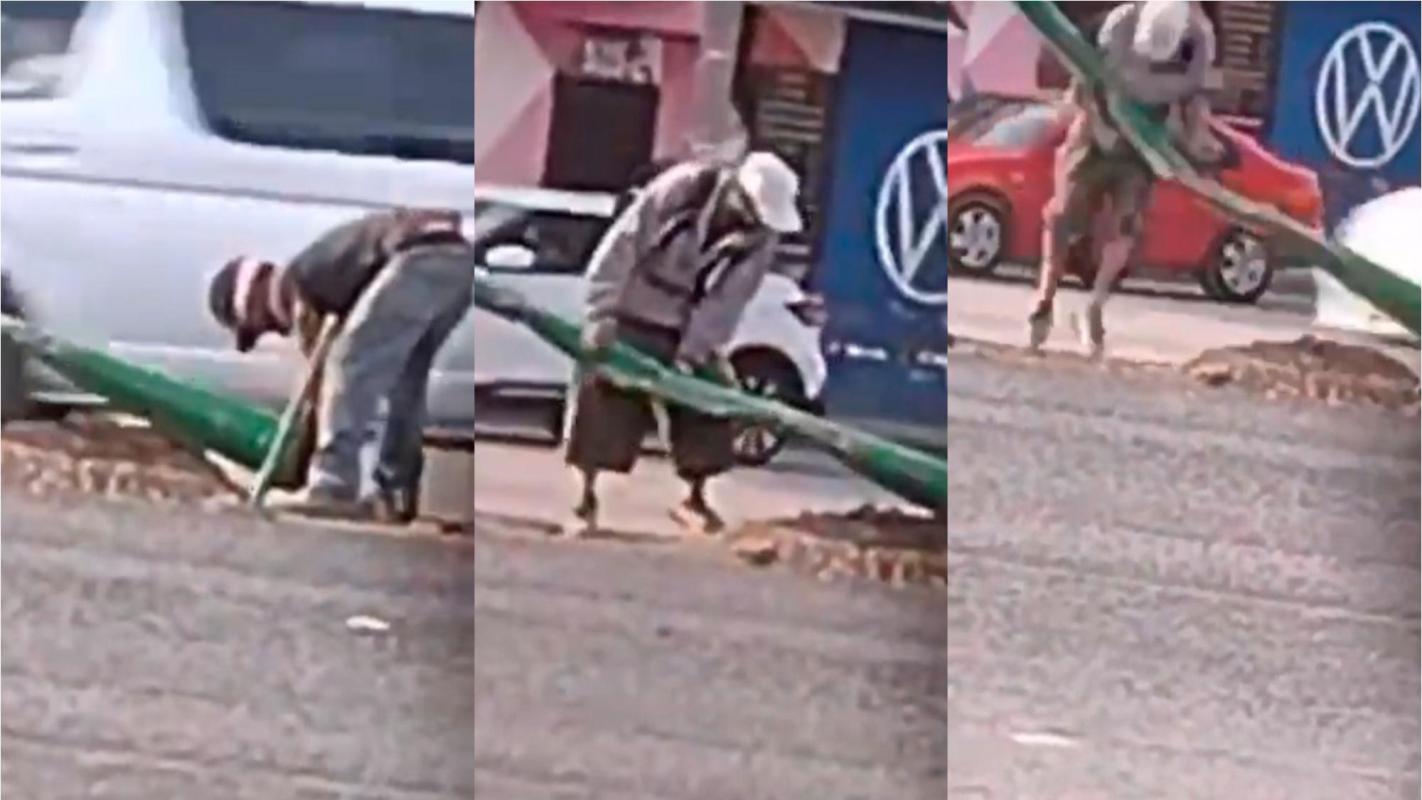 En la grabación, que ya acumula más de 100 mil reproducciones, aparecen dos hombres agachados cerca de un poste que está botado en la mitad de una avenida muy transitada, quienes intentaban robar el cableado.