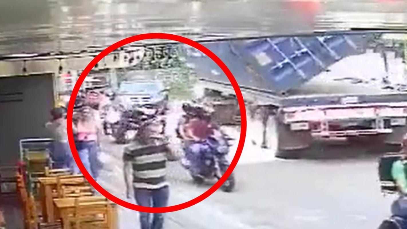 VIDEO | Un milagro: Motociclista se salvó de morir aplastado por un container