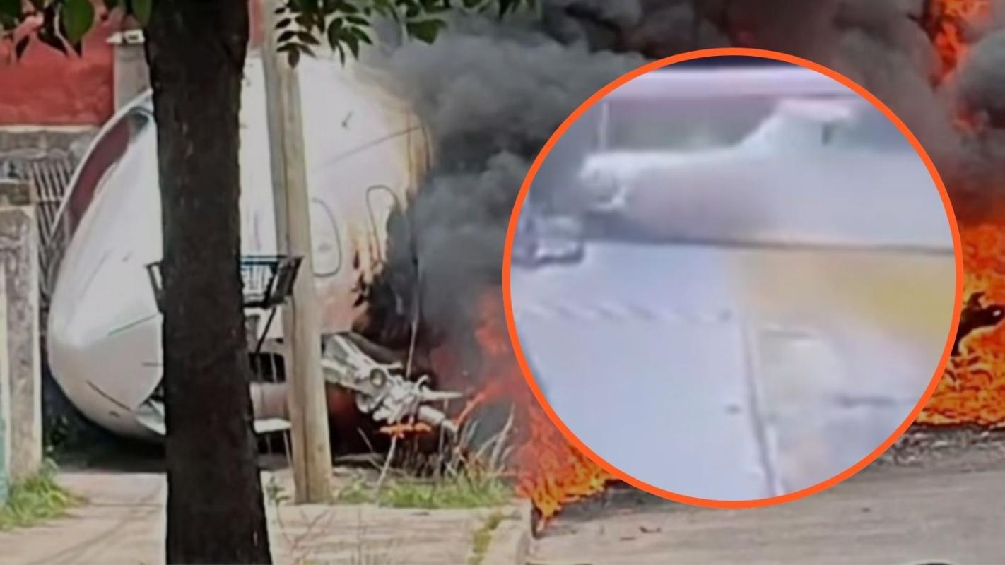 Uno de los videos muestra el momento exacto en que el avión se sale de la zona delimitada del aeropuerto, para luego pasar hacia la vía pública e impactar contra viviendas del sector.