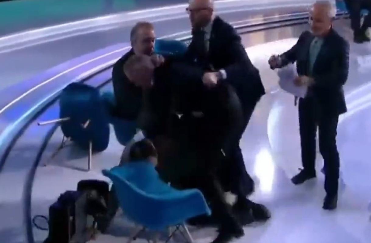 Shufrych, al recibir el primer “combo”, se enfrascó en una riña con el periodista. Todo terminó con ambos hombres en el suelo mientras el resto de los acompañantes del programa buscaban separarlos.