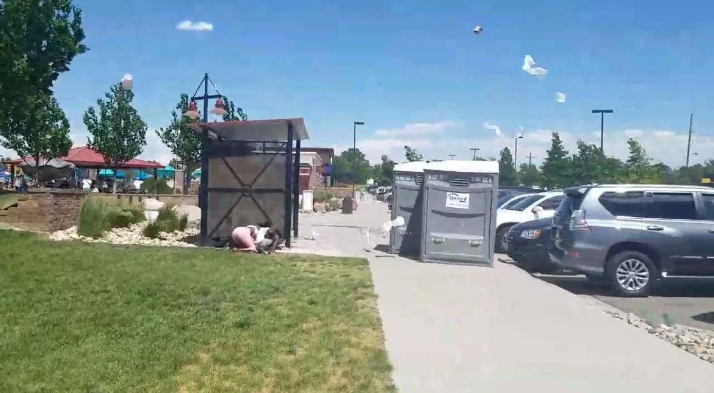 El hecho ocurrió en un parque de Commerce City en Colorado, donde personas que estaban en el parque, fueron sorprendidos por fuertes ráfagas de viento, las cuales -además de levantar los baños químicos- terminaron desarmando un toldo y provocando que las personas se tiraran al suelo para no ser levantados por el fenómeno.