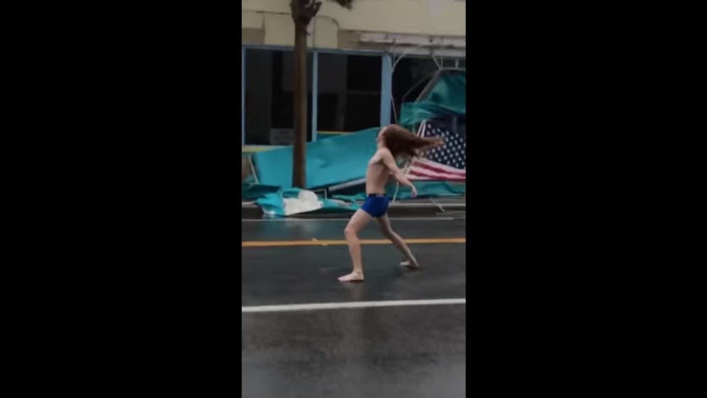 [VIDEO] Sujeto en calzoncillos "enfrentó" en la vía pública al huracán Florence