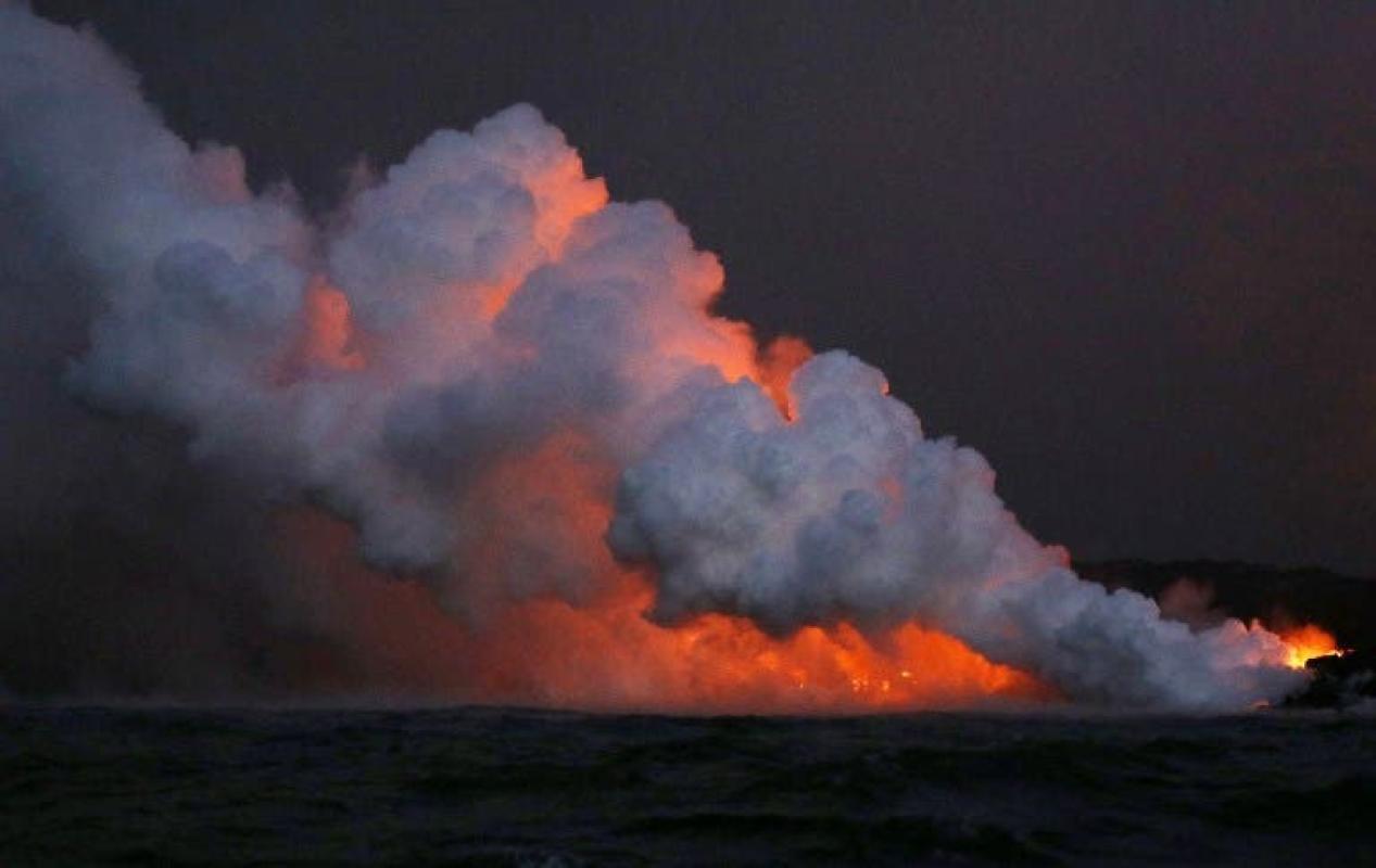 Un video lanzado por la Guardia Nacional del Ejército de Hawái mostró cómo la noche de este martes se vio iluminada por la lava del volcán hawaiano en erupción Kilauea.