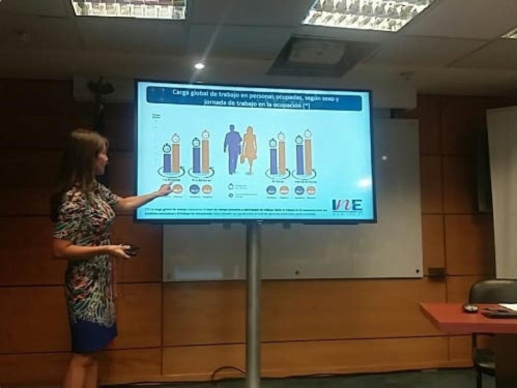 La directora del INE explicó que una de las principales conclusiones que arrojó el estudio dice relación con las inequidades de género que existen en nuestra sociedad y que, en este caso, podemos verlas reflejadas en la destinación de horas que las mujeres le dan a los trabajos no remunerados (labores del hogar), por sobre los hombres.