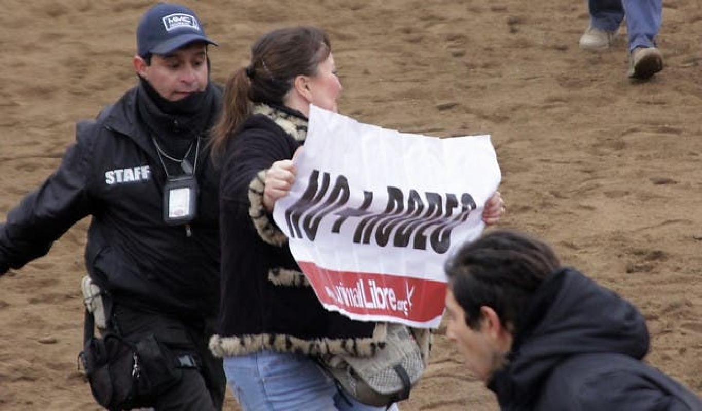 Este sábado miembros de la ONG, Animal Libre interrumpieron actividades de rodeo que se estaba llevando a cabo en la media luna del Parque Padre Hurtado.