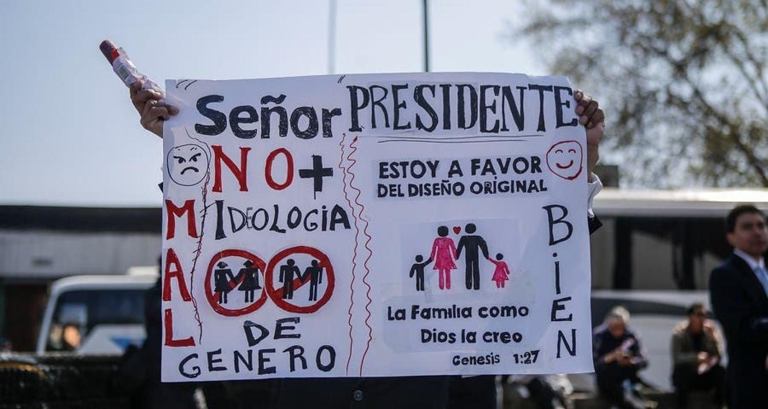 Acompañados de pancartas y cánticos en contra de la Ley de Identidad de Género, los manifestantes fueron contenidos por los efectivos de seguridad que se desplegaron en la zona y, ya dentro, no hubo comentarios contra el actuar del Ejecutivo.