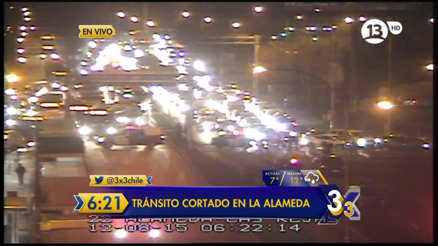 Por accidente, tránsito suspendido Alameda-Las Rejas al oriente. Veh. particulares por Heras al pte y Loc. Colectiva por Los Alerces al sur.