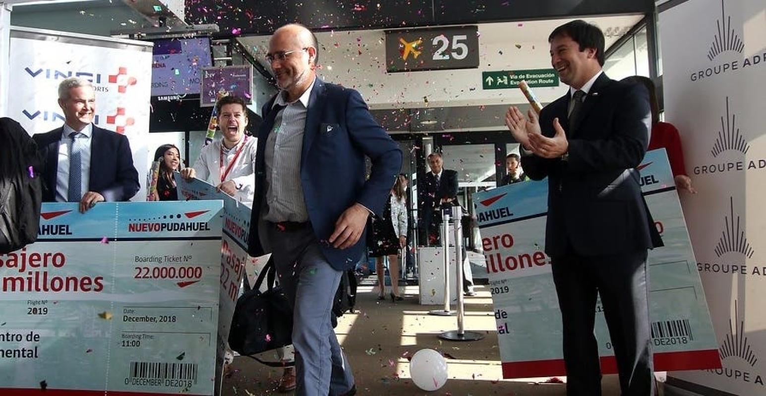 La mañana de este lunes se premió al pasajero 22 millones de la historia del aeropuerto Arturo Merino Benítez, quien fue saludado por representantes de toda la comunidad aeroportuaria.