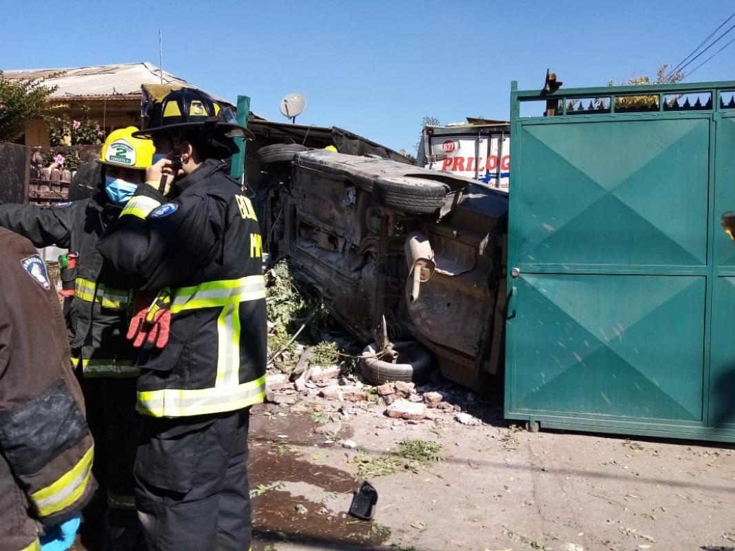 Un aparatoso accidente automovilístico ocurrió la tarde de este sábado en calle Las Américas de la comuna de Cerrillos y que vio afectada a una familia que estaba en su casa.