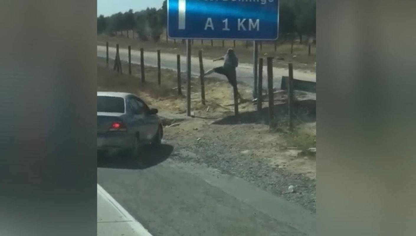 Fue en este contexto que dos personas, un conductor y el copiloto de un automóvil, intentaron en la Ruta 78, a la altura de Leyda, sacar un poste que sostiene las mallas laterales de la carretera, para así evadir ‘presuntamente’ el control.