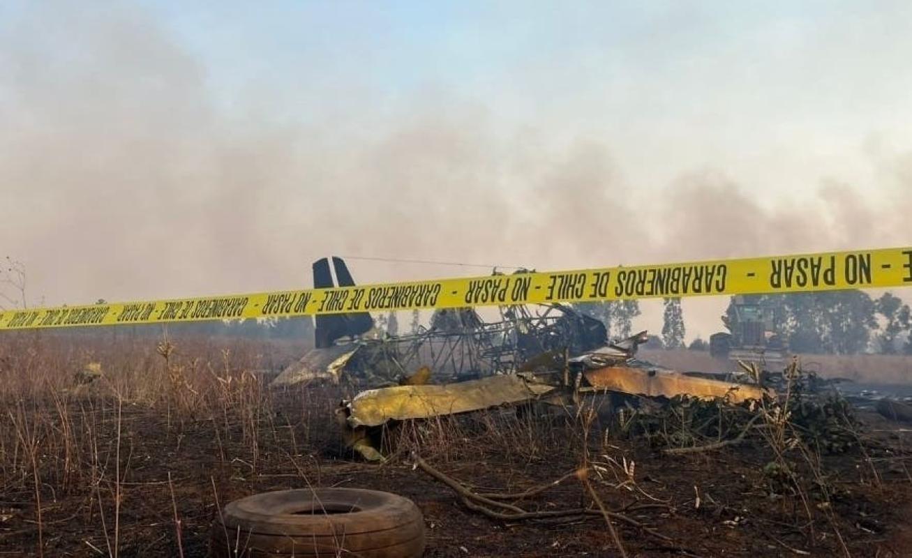 Este sabado una avioneta que combatía el incendio forestal en la comuna de Galvarino, Región de la Araucanía, se estrelló.