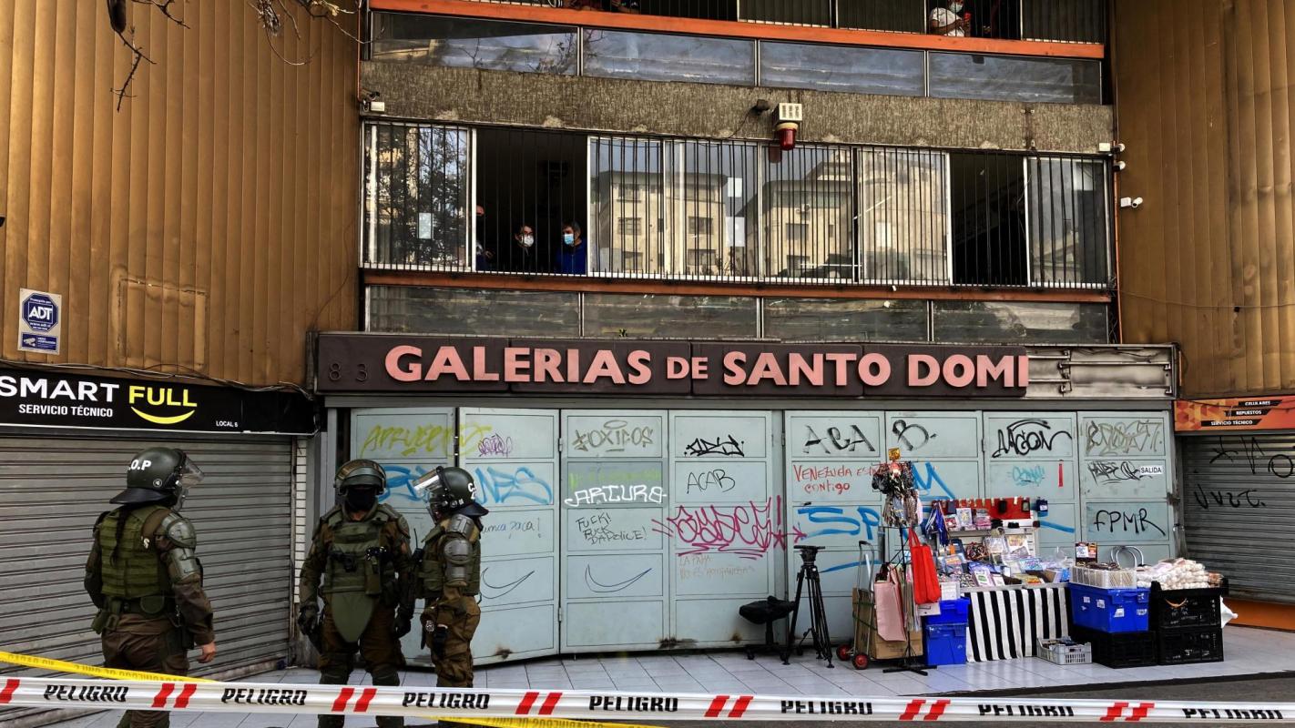 Alrededor de las 14:35 horas, en calle Santo Domingo, funcionarios policiales fueron alertados por transeúntes acerca de supuestos disparos al interior de la galería.
