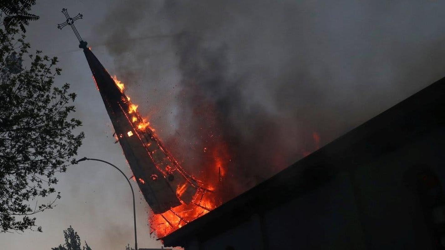 Horas más tarde, otros manifestantes quemaron la Iglesia de la Asunción, una de las más antiguas de Santiago. Las llamas derribaron la cúpula de este templo.
