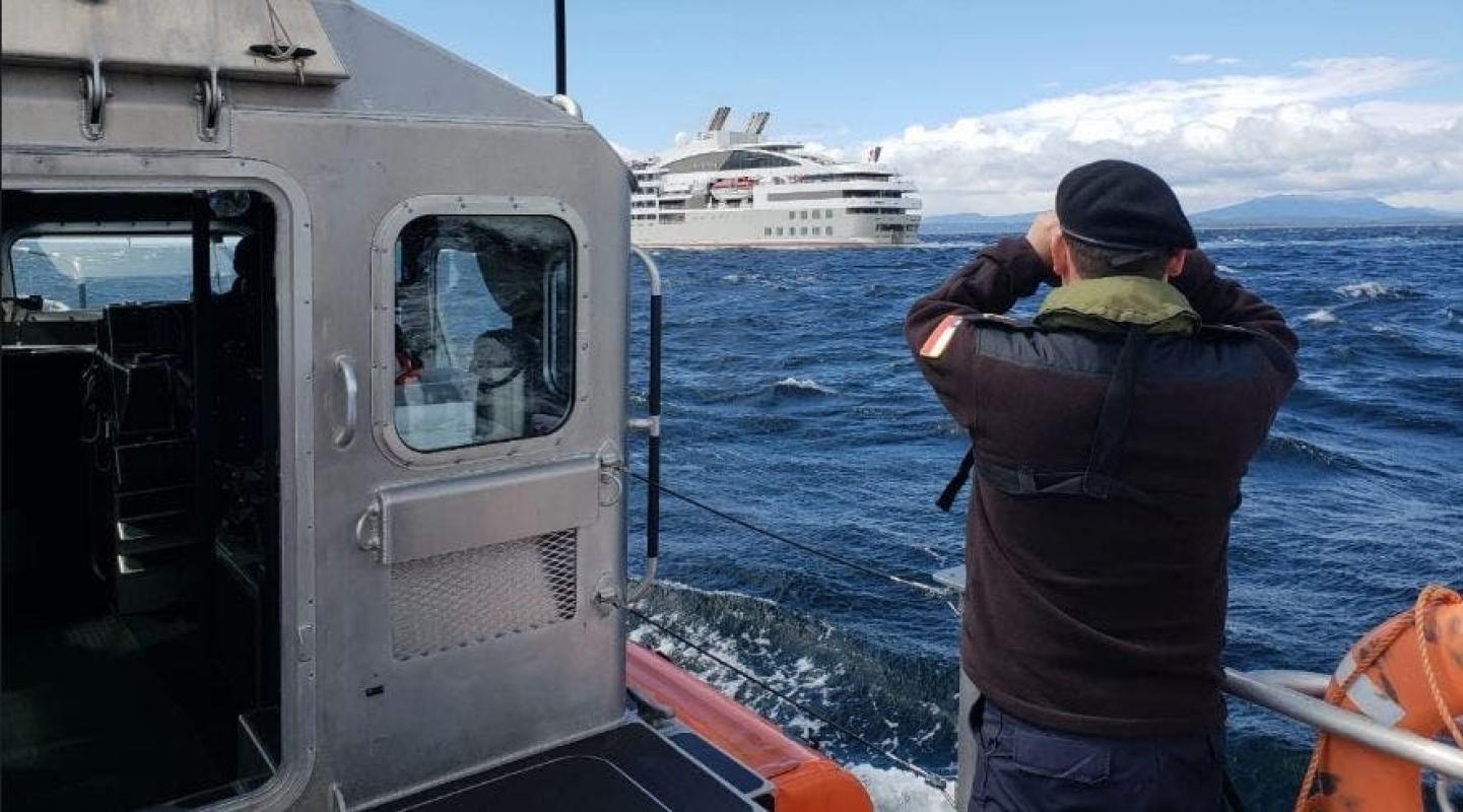 Crucero francés “Le Soleal”, con 222 pasajeros a bordo, tocó fondo en el sector de Canal Kirke, en cercanías de #PuertoNatales. Medios navales fueron desplegados al área, confirmándose que no existe riesgo de vida humana ni preliminarmente de contaminación. pic.twitter.com/JSpwKz1xuZ