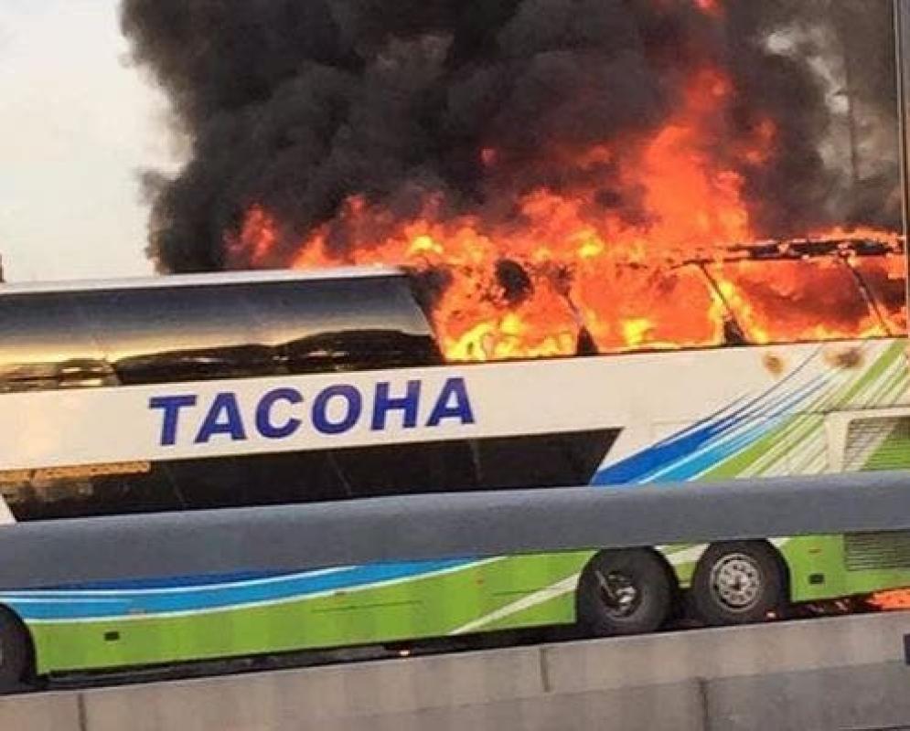 Bus se incendia en la Ruta 5 sur a la altura de Buin