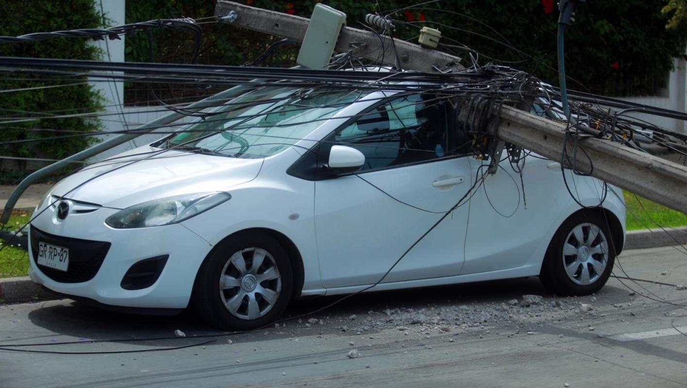 Un camión derribó seis postes del tendido eléctrico dejando sin suministro a al menos 40 viviendas de la comuna de La Reina en la Región Metropolitana. Además, una de las estructuras cayó sobre un vehículo menor que estaba estacionado, el que no tenía personas en su interior.