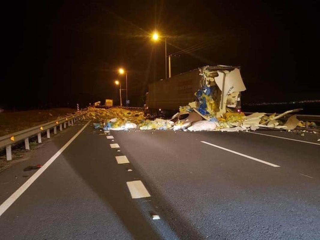 El Conductor del camión volcado fue trasladado al Hospital de La Serena, consciente y fuera de riesgo vital pero lesionado.
