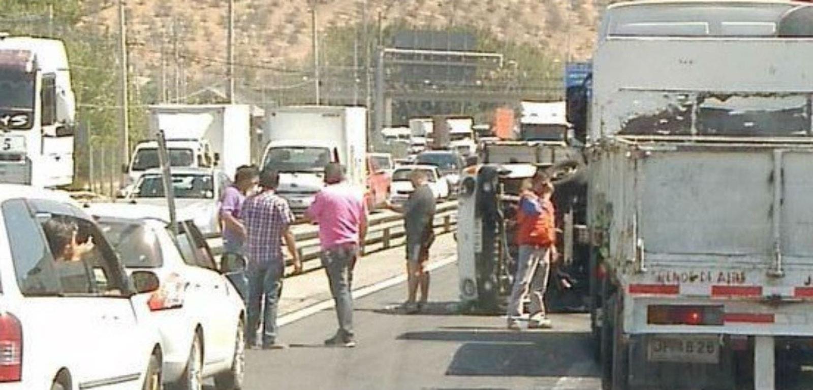 Camión volcado genera alta congestión en Ruta 68 sector Pudahuel