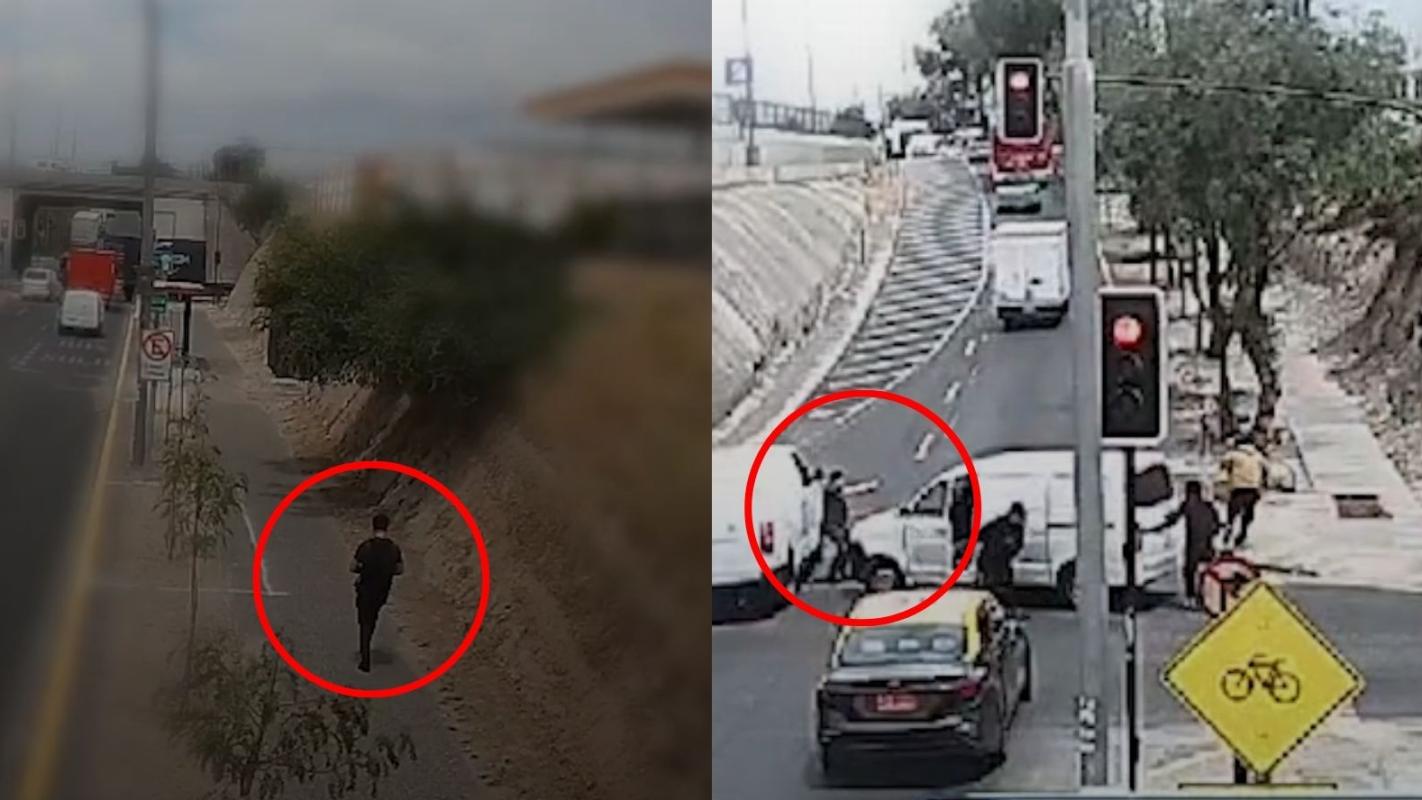 El momento fue captado por cámaras de seguridad, que muestran al policía caminando con tranquilidad por la calle. Al llegar cerca del lugar de los hechos, a unos 50 metros de distancia, el funcionario se percata del robo y, tras unos segundos, comienza a correr en dirección a los delincuentes para enfrentarlos con su arma de servicio.