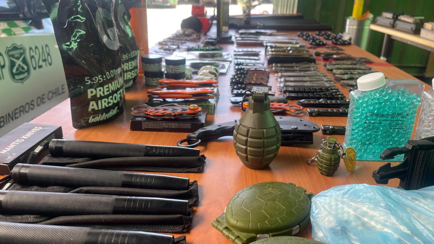 Entre los productos se encontraban armas de fogueo, balines, cuchillos, e incluso réplicas de granadas, los que podrían ser utilizados para cometer delitos.