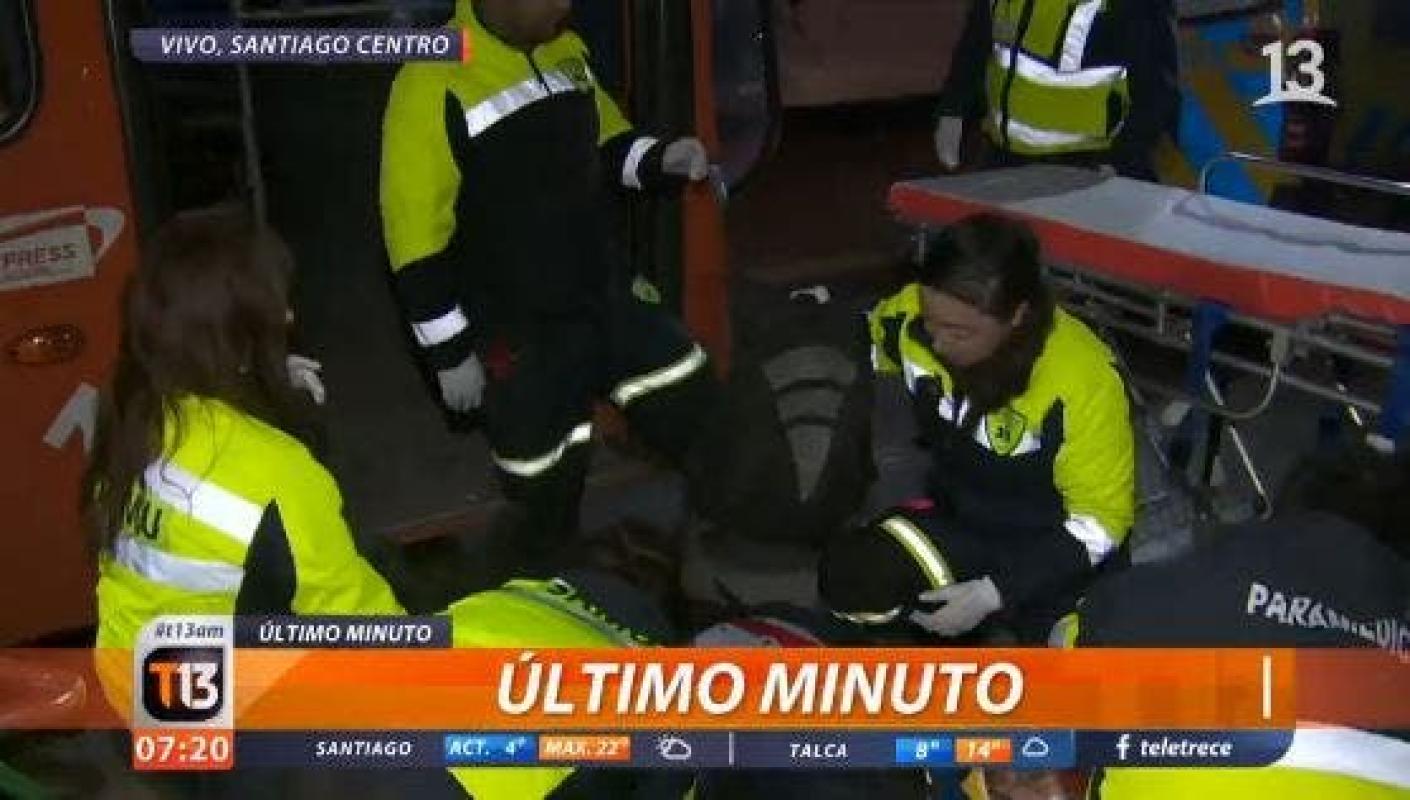 Personal de emergencia trabaja en el lugar, mientras Carabineros indaga las razones del accidente en Chacabuco con la Alameda con dirección al poniente.