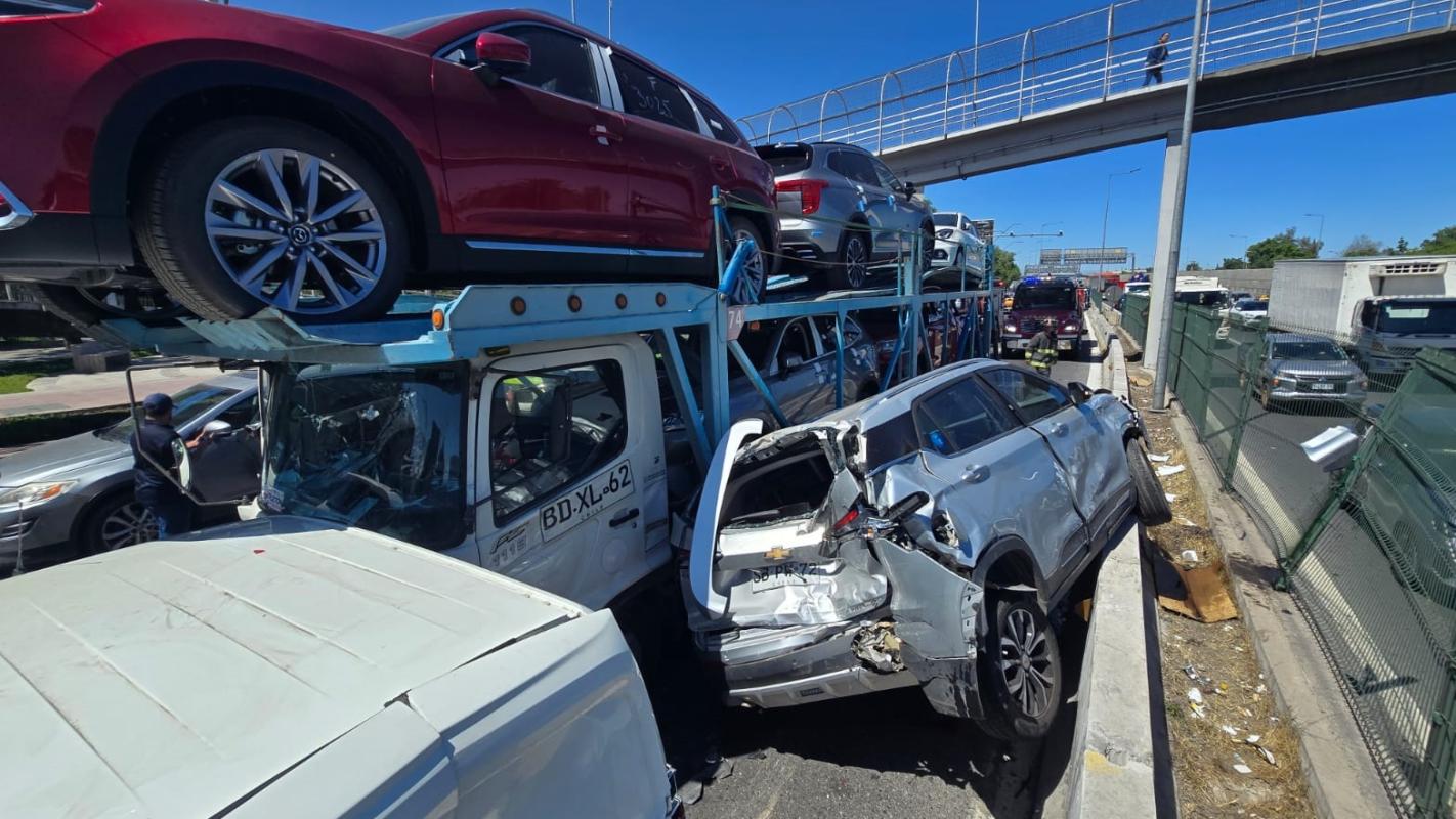 Un accidente de tránsito múltiple se produjo al mediodía de este lunes en La Florida, cuando un camión que transitaba por la autopista Vespucio Sur perdió el control y colisionó contra otros nueve autos que se trasladaban por el lugar.