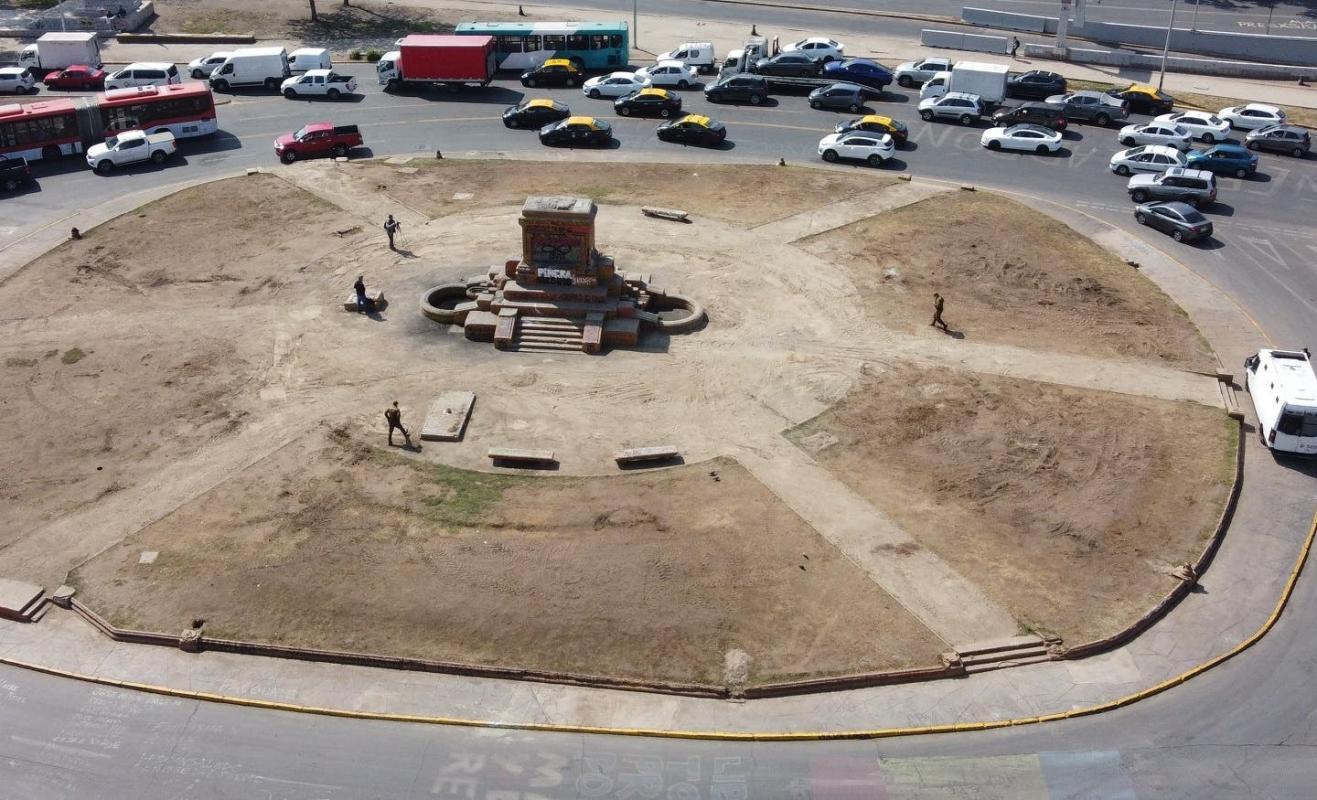 El objetivo de esto fue proteger el cofre con los restos tras las constantes protestas en el sector, siete meses después de la extracción de la escultura ecuestre que coronaba el monumento.
