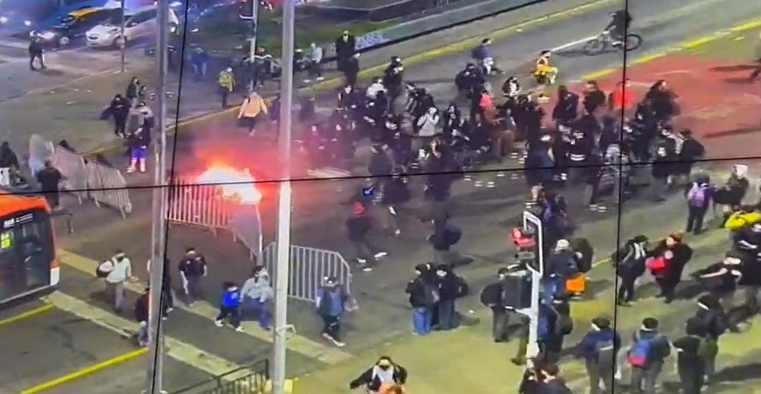 Según detalló Carabineros, se trataría de un grupo de estudiantes que levantó barricadas en la intersección de Alameda con Arturo Prat.