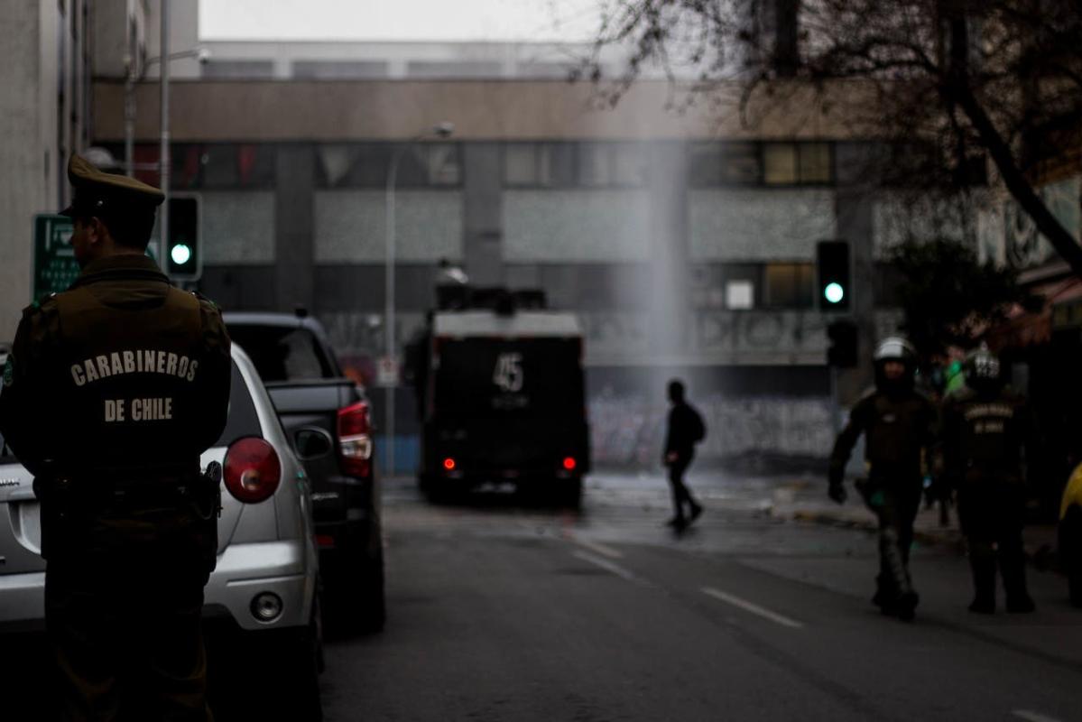“Todos los procedimientos los evaluamos permanentemente y estamos revisando nuestras actuaciones. Si esa denuncia existe, la vamos a analizar, verificar y ver de qué se trata. Lo cierto es que Carabineros está en aquellos lugares donde se altera el orden público, donde se pone en riesgo a las personas, donde se pone en riesgo al resto de las comunidades escolares y nos obliga a actuar. La ley nos obliga a actuar cuando existen atentados graves como el lanzamiento de bombas incendiarias”, aseguró.