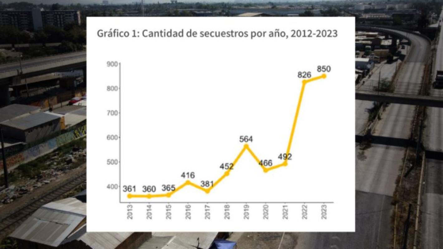 El alza del fenómeno. “Un primer análisis descriptivo de los ingresos de delitos de secuestros al Ministerio Público, tomando como referencia la información disponible en las bases de datos del SAF, permite observar que durante la última década (2013 a 2023), se han registrado un total de 5.876 delitos de secuestros”, dijo el informe.